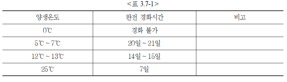 ⑵ 동절기 기온이 하강하는 경우, 충전재가 단단해질 수 있으므로 적절한 온도를 유지하여작업이 용이하도록 해야 한다.