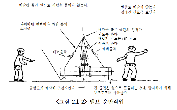 (1) 상수도용 밸브류의 운반작업에 있어서 다음과 같은 사항에 주의한다.