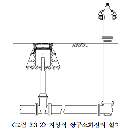 (4) 지하식 소화전을 설치할 때에는 지표면과 소화전의 밸브조정축의 상단과의 간격이 30cm정도가 되도록 플랜지단관으로 조정한다. 또, 원칙적으로 플랜지단관을 사용할 때에는 진동방지장치를 설치한다.
