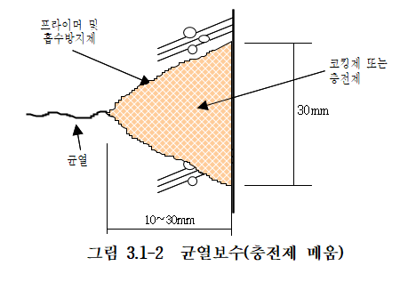 바탕처리 및 균열 보수, 곰보, 요철, 핀홀, 구멍 등의 결함부분을 평탄하게 보수하거나 누수 예상 부분을 사전에 지수처리하기 위해 사용되는 수지 모르터, 수지시멘트 모르터, 코킹제류, 실링제류를 말한다. 이때 사용하는 충전용 보수제는 먹는물수질기준에 적합한 제품이어야 한다.