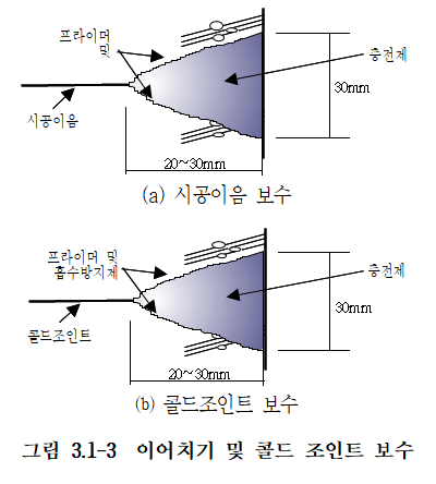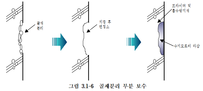 취약부에 대한 강도를 보강하여 방수․방식층의 부착력을 강화시키기 위한 작업으로서 액체(상)형의 규산질계(또는 실리콘계) 흡수방지제(강화제)를 사용한다.