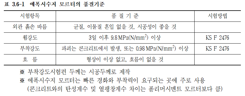 이 시방서 KCS 57 40 15 방수공사, 3.6.2 콘크리트용 에폭시수지계 방수·방식의 ⑴에 따른다.