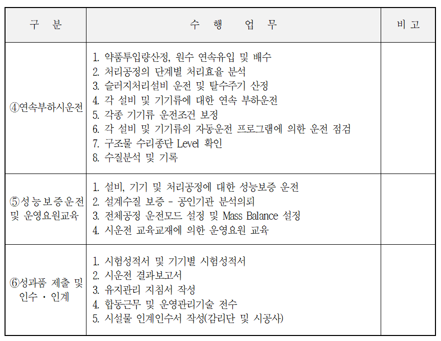 ③ 시운전 세부 수행계획(무부하, 부하, 연속부하, 수질분석 등)