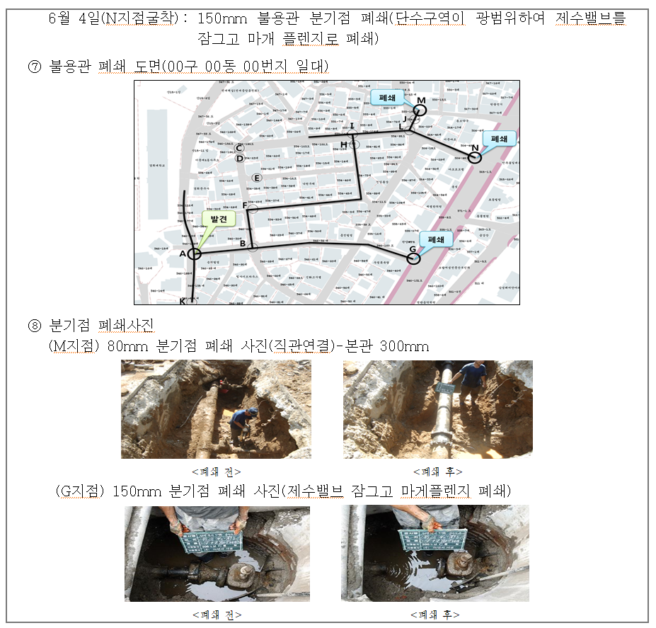 ③ 최종보고 : 최초 누수 발생부터 누수복구완료시까지의 상황을 통수완료 후 종합 보고한다.