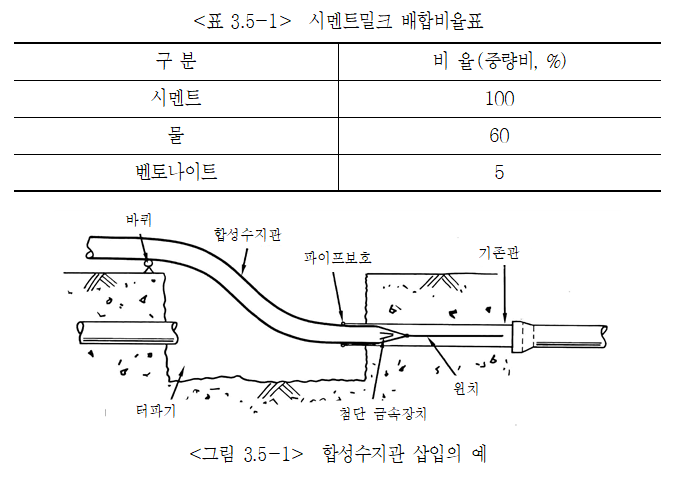 (5) 주로 석면시멘트관 및 주철관에 적용하며, 관경 등 상세한 내용은 관련 공법사의 공사시방서를 준용한다.