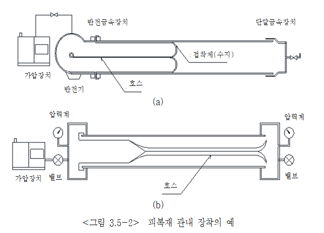 (3) 모든 관종에 적용할 수 있고 기존관의 강도가 노후 되었더라도 시공이 가능하다. 관경 등 상세한 내용은 관련 공법사의 공사시방서를 준용한다.