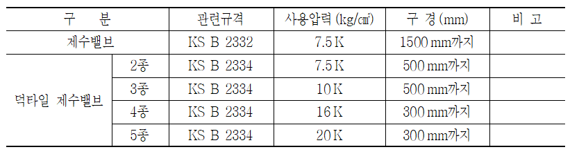KS B 2334 : 수도용 덕타일 주철 제수밸브