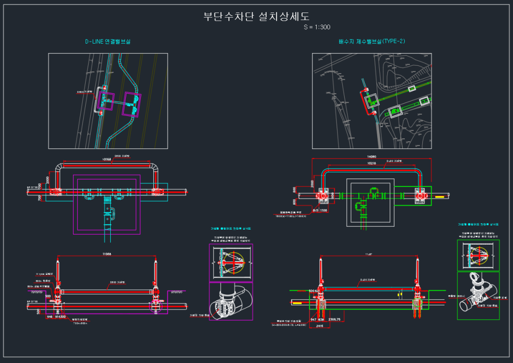 [도면] 부단수 차단 도면들 게시일: 2024년 08월 04일업데이트 날짜: 2024년 09월 10일게시자: HG카테고리:02.CAD자료(상수도) 부단수차단 D700xD500 SP 부단수차단설치상세도(700×500) HG heygaso.synology.me