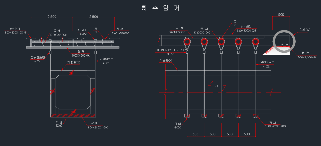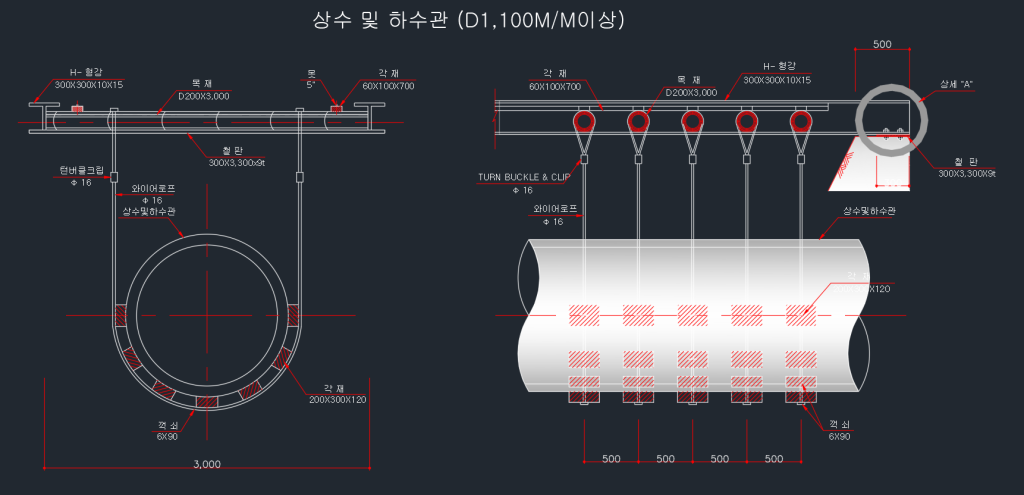 [도면] 지장물 보호공 상세도 게시일: 2024년 08월 04일업데이트 날짜: 2024년 09월 10일게시자: HG카테고리:02.CAD자료(상수도) 지장물보호공 상세도dwg 관매달기 D=100~700MM 관매달기 D=800~1,000MM 관매달기 통신 관매달기 상수 및 하수관 D=1,100MM 이상 관매달기 하수암거 HG heygaso.synology.me