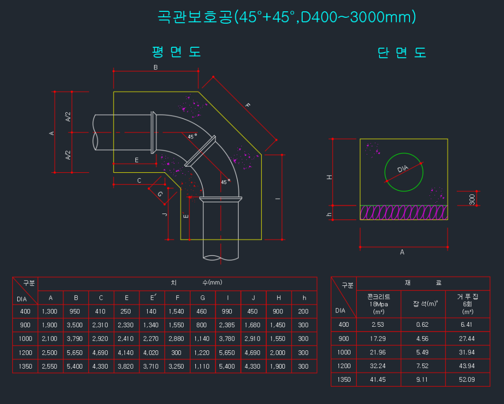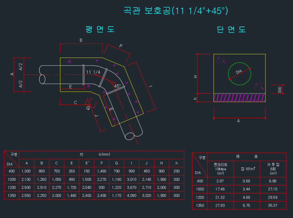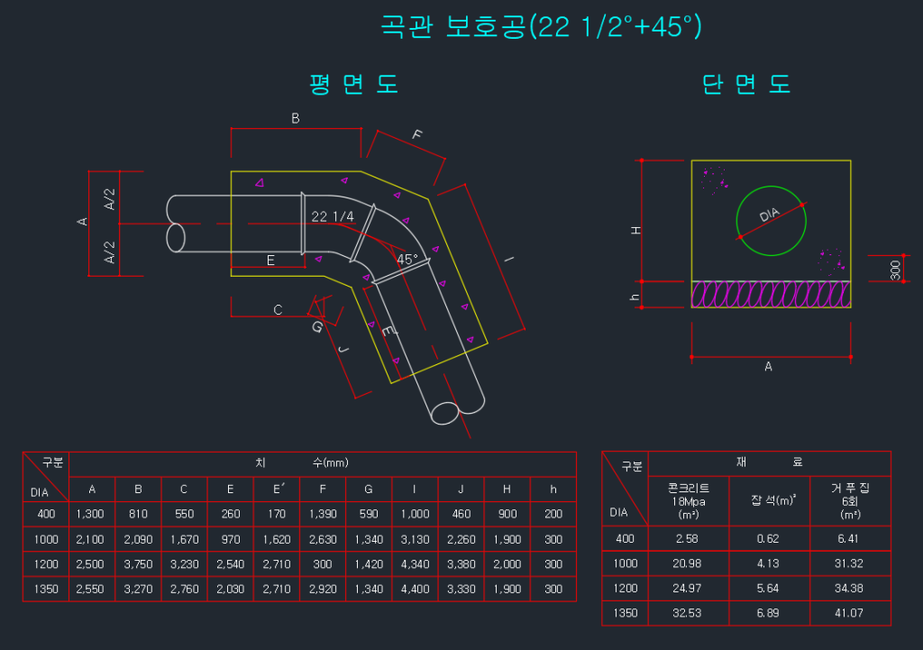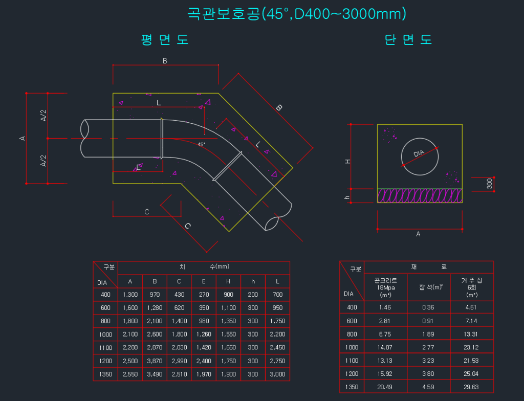 [도면] 곡관보호공 상세도 게시일: 2024년 08월 04일업데이트 날짜: 2024년 09월 10일게시자: HG카테고리:02.CAD자료(상수도) 관보호공 상세도dwg HG heygaso.synology.me