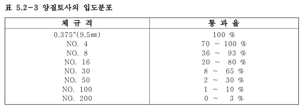 – (가) 관저 바닥에 포설 할 양질의 토사는 <표 5.2-3>의 입도 범위내에 있거나 설계 자가 토질시험결과및 기타 관련 기술자료에의해 결정한 재료를 말한다.