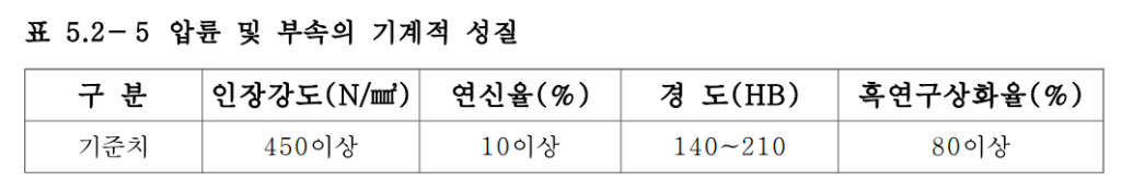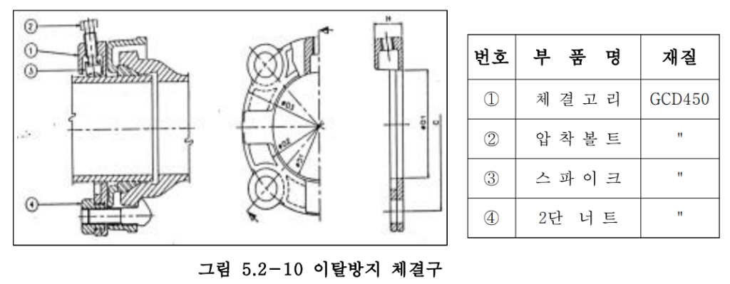(다) 이탈방지압륜및부속은다음의기계적 성질을 만족하여야한다.