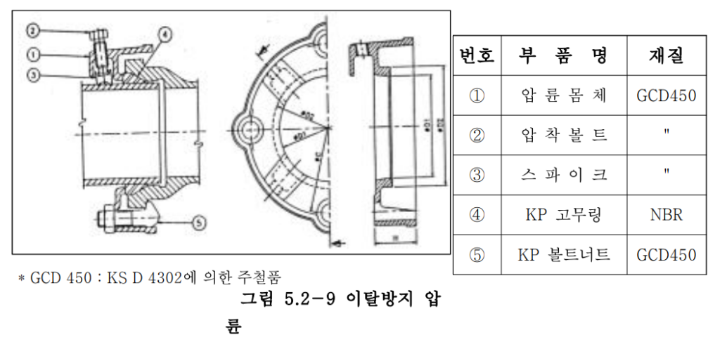 (라) 이탈방지이음에는 이탈방지 압륜과 이탈방지 체결구가 있으며, 참고로 이탈방 지이음의 종류와구조는<그림 5.2-9>, <그림5.2-10>과같다.