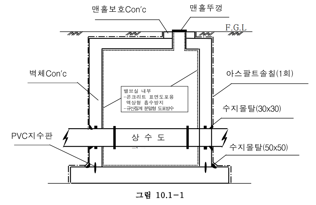 우리공사에서 시행하는 광역상수도 및 공업용수도 시설중 정수장구조물 내부방수공사 설계에 적용한다.