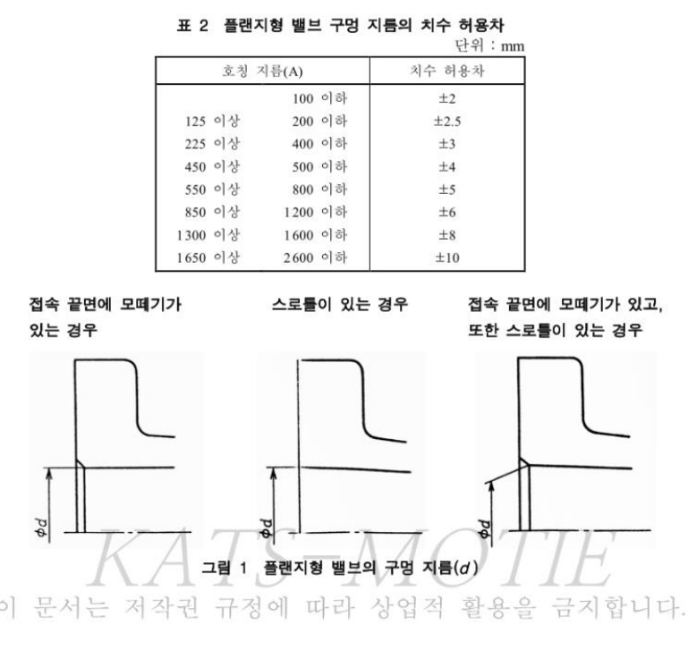 플랜지형 밸브 구멍 지름의 치수 허용차는 표 2와 같다.