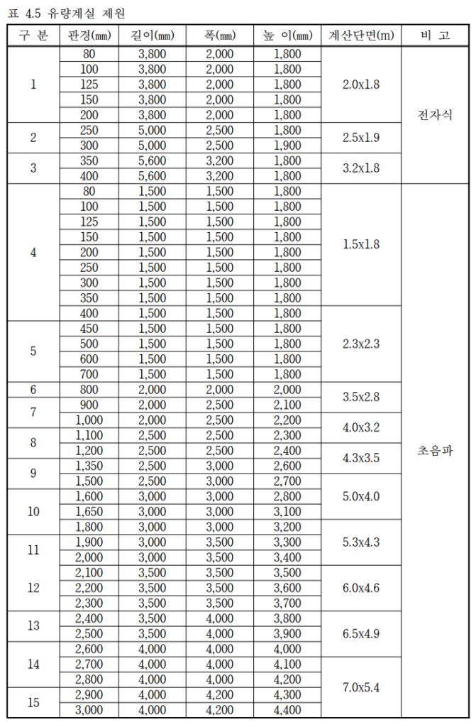 ⑶ 유량계크기 : 관경에 및 유속에 따라 결정