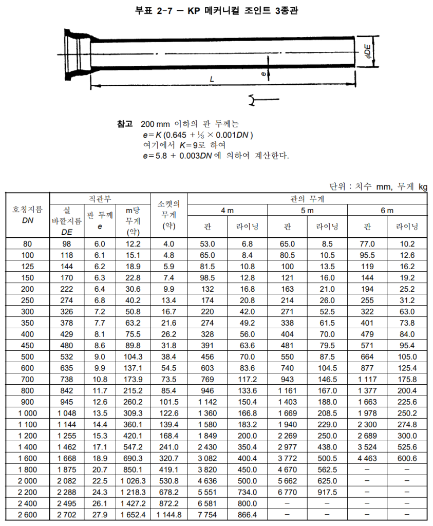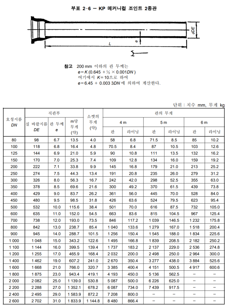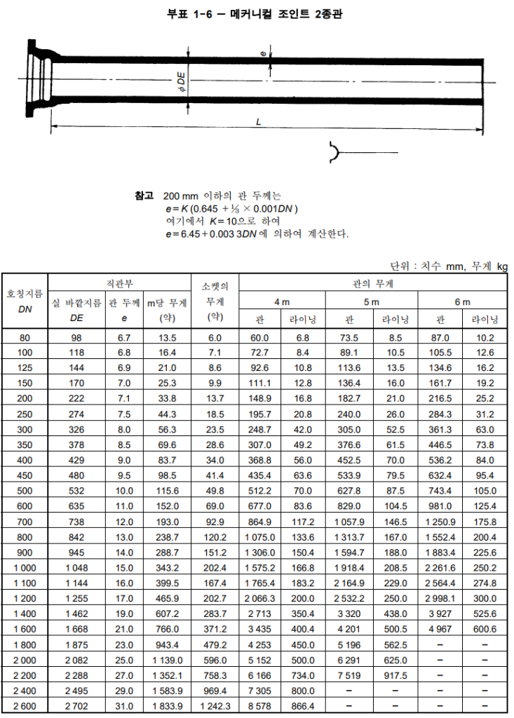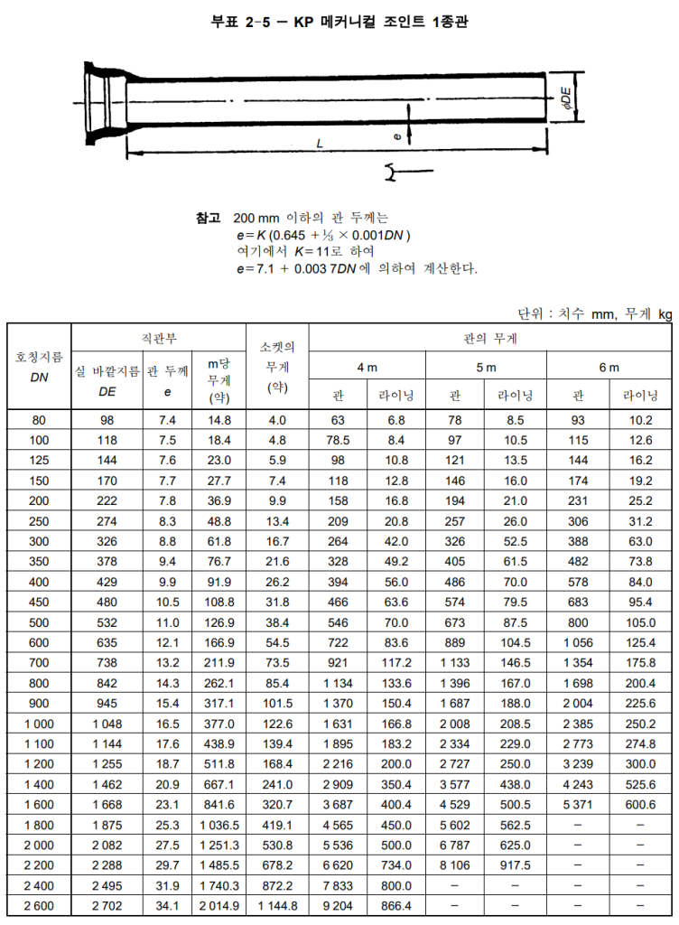 - 관의 두께에 따라 1종관, 2종관, 3종관, 4종관으로 구분