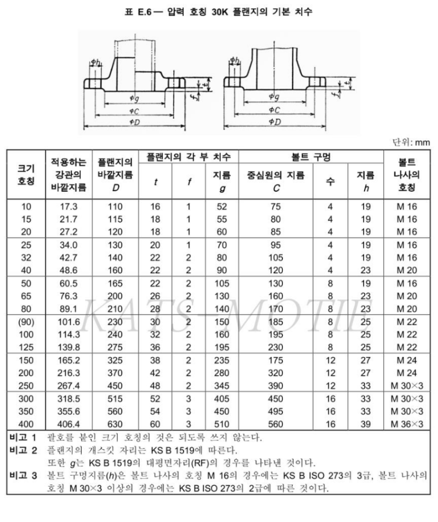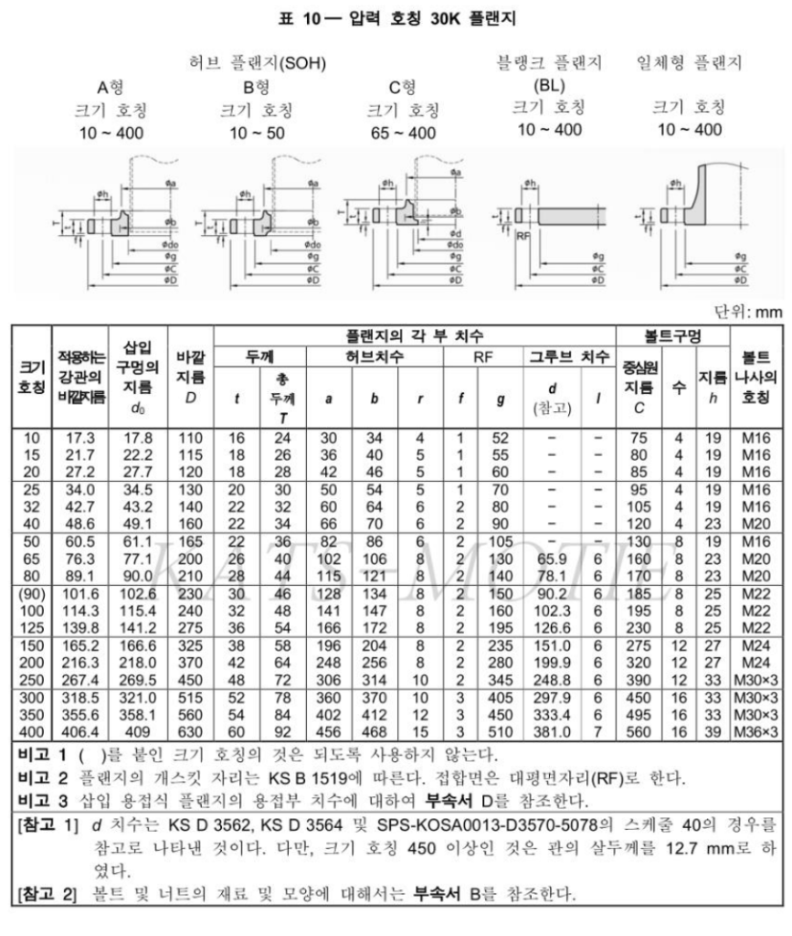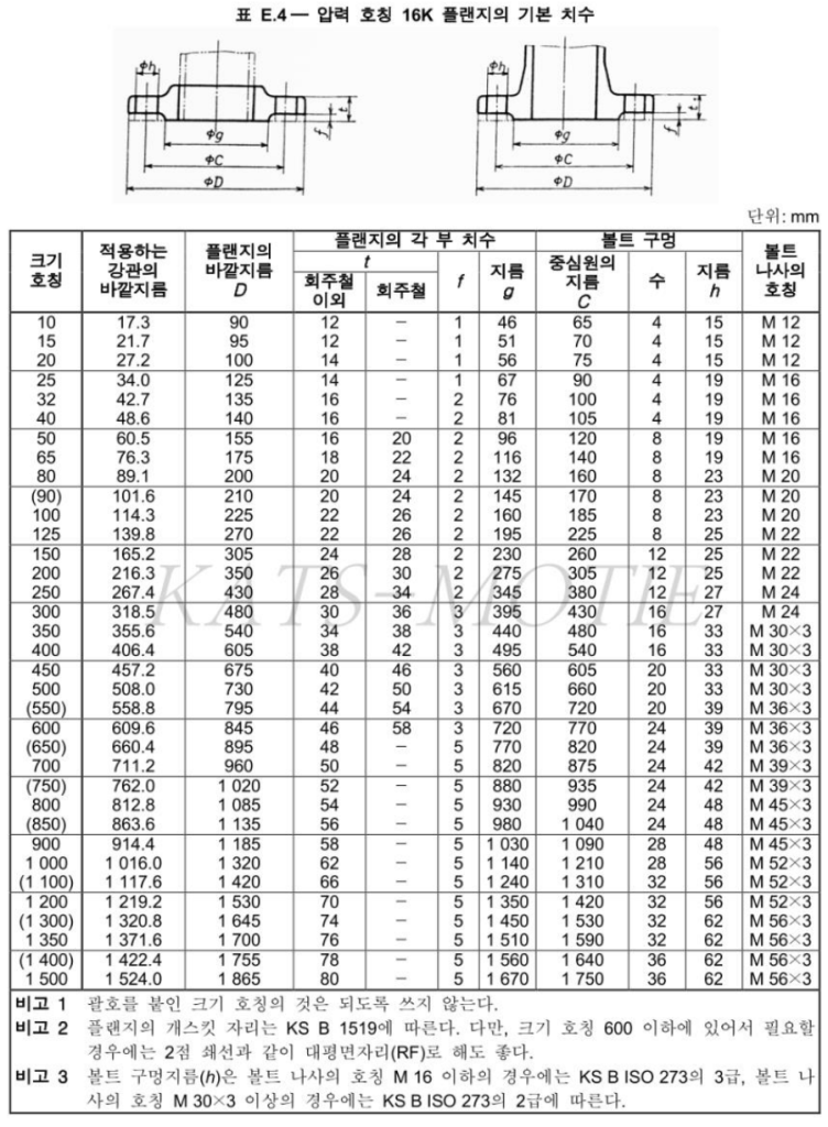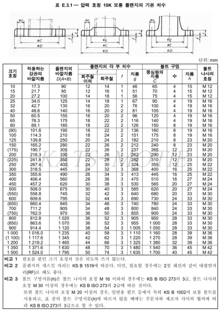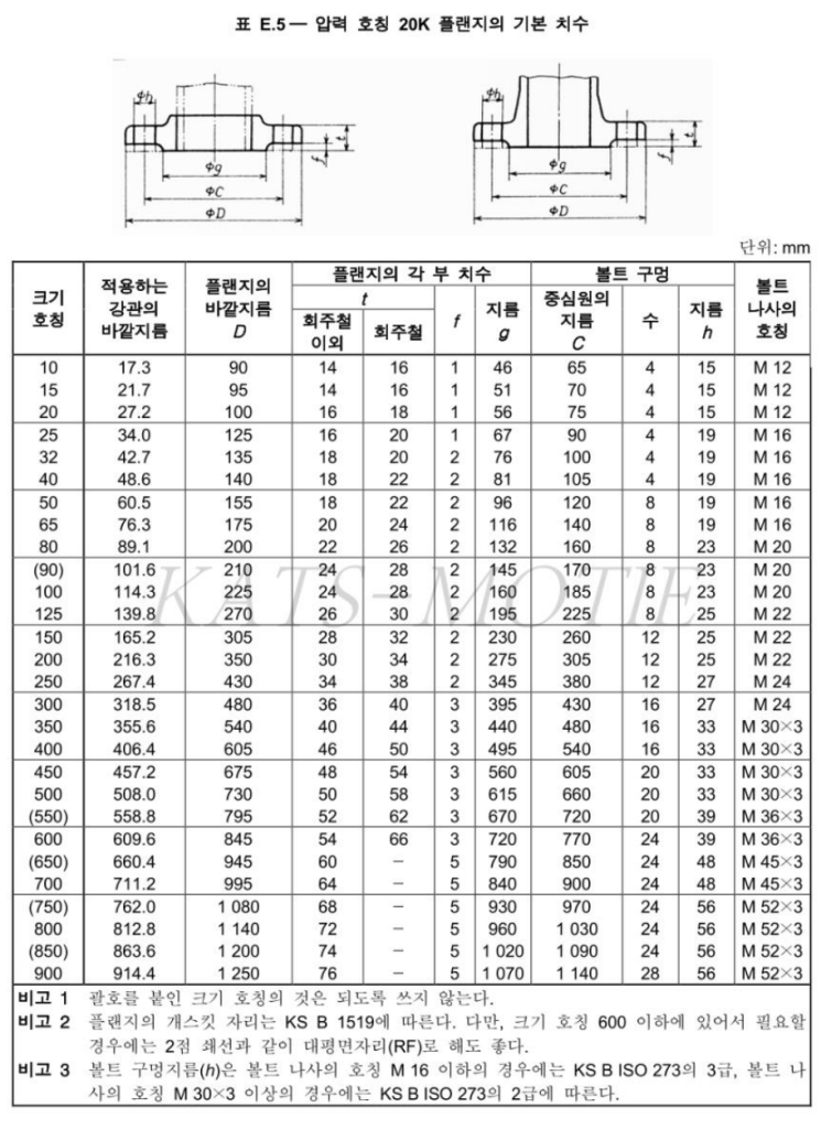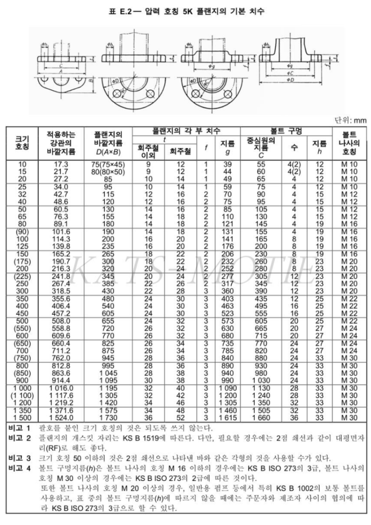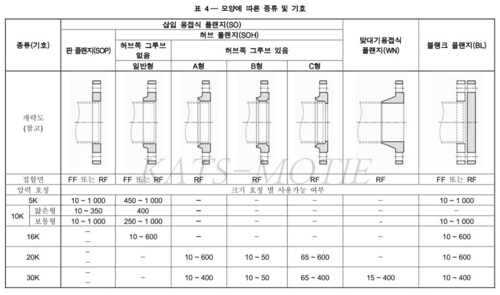 이 표준은 증기ㆍ공기ㆍ가스ㆍ물ㆍ기름 등의 일반용 배관에 사용하는 관ㆍ밸브 등을 접속하는 압력 호칭 2 K, 5 K, 10 K, 16 K, 20 K 및 30 K의 철강제 관플랜지의 기본 치수 및 치수 허용차에 대하여 규정