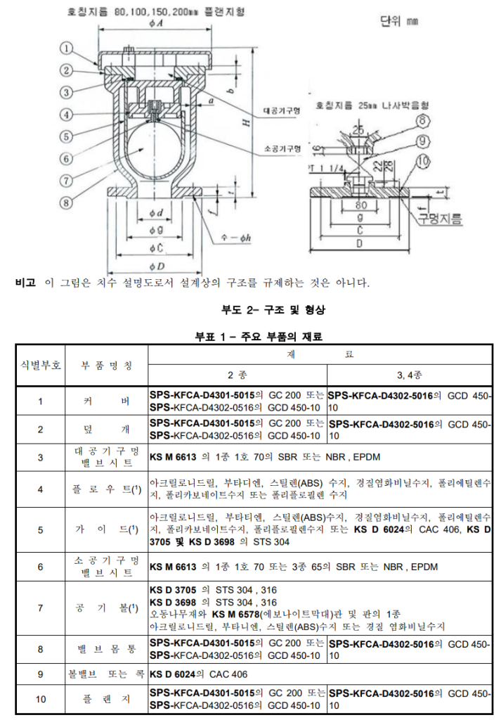 수도법 시행령 제24조의 2 제1항 (수도용 자재와 제품의 사용)시행으로 업체 의견을 수렴한 내용을 추가하고 소구경 호칭지름 20 ㎜ 을 포함한 2종, 3종의 바깥지름 D의 치수를 KWWA B 102( 수도용 소프트 실 슬루스 밸브)기준에 맞추어 수정하였다. 수도용 급속 공기밸브는 수도용 소프트 실 슬루스 밸브에 설치되는 제품으로 표준을 통일하였다. JWWA B 137(수도용 급속공기 밸브), KS B 2340 (수도용 공기밸브)등 국내∙외 밸브 관련 표준을 참고하여 작성하다.