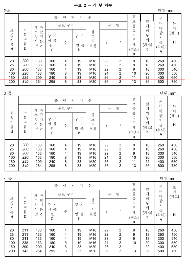 | 2종,3종,4종 | 플랜지형 | 80,100,150,200 |