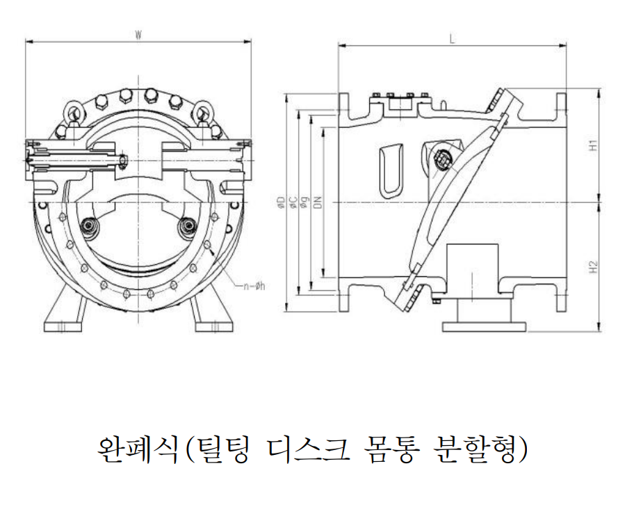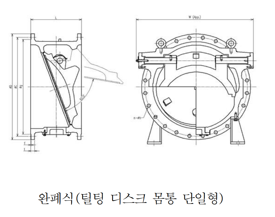완폐식 체크밸브는 일반형, 버터플라이형, 틸팅디스크형으로 구분된다.