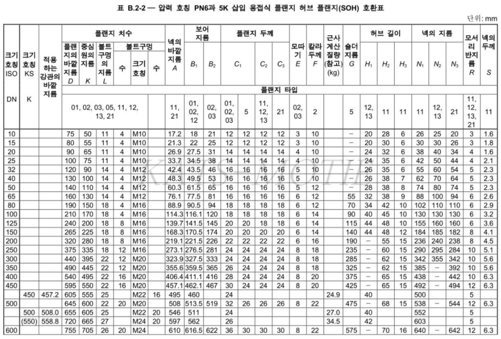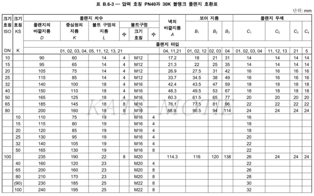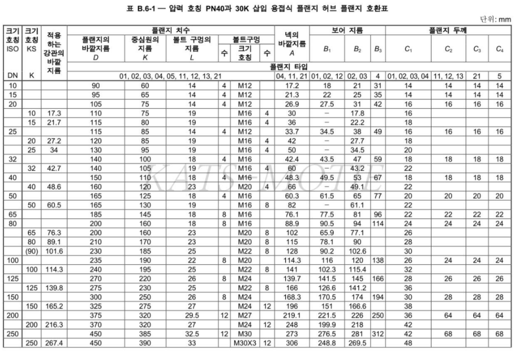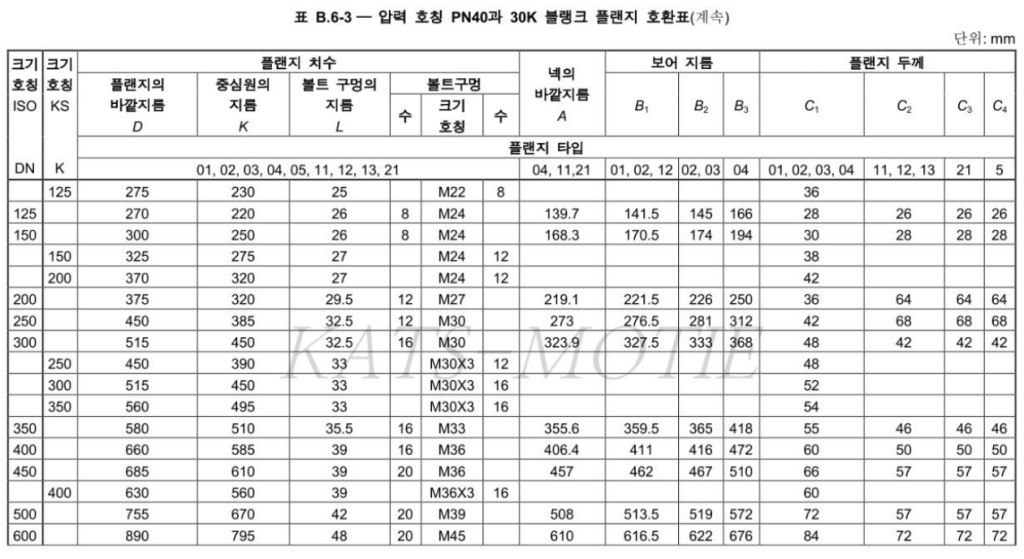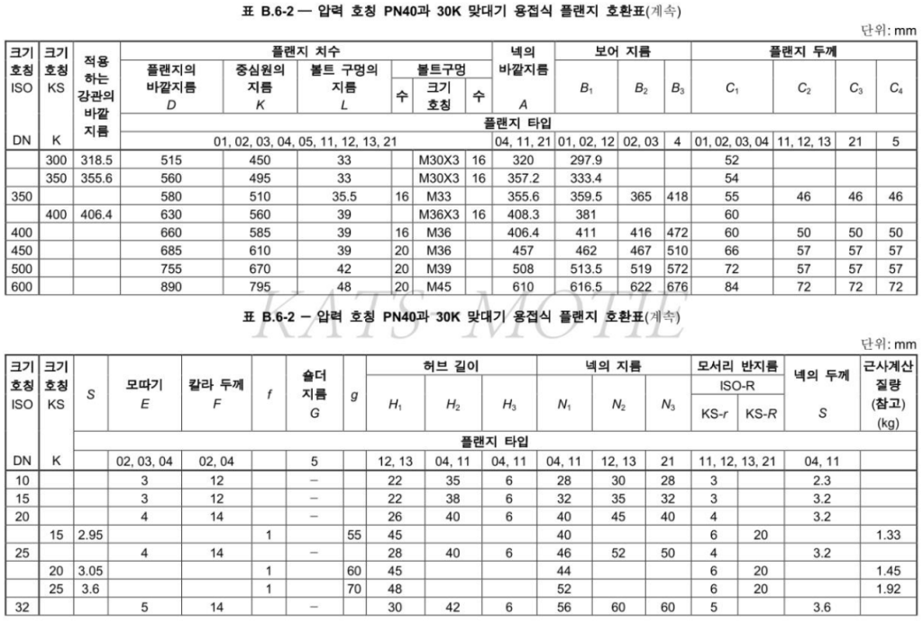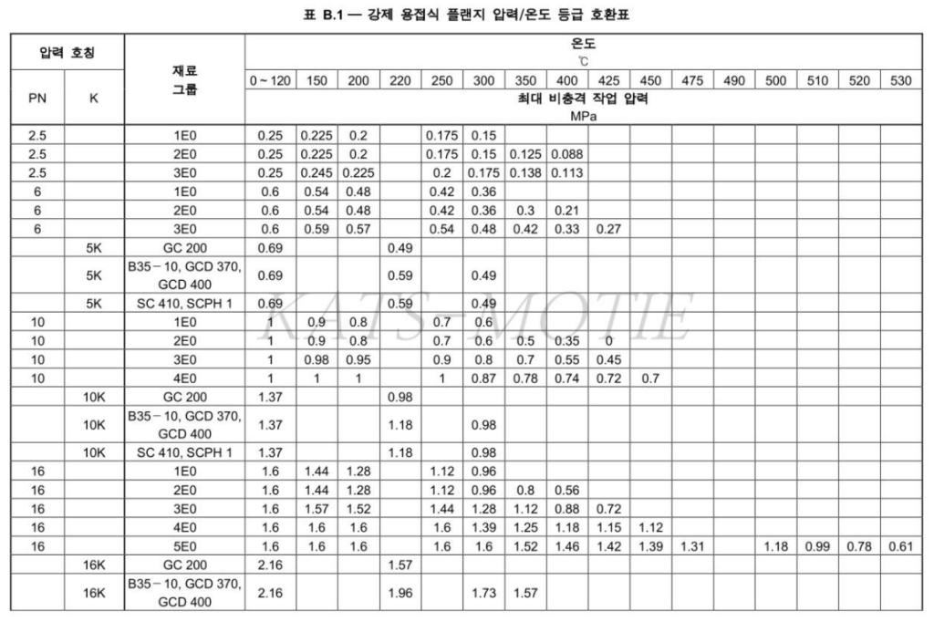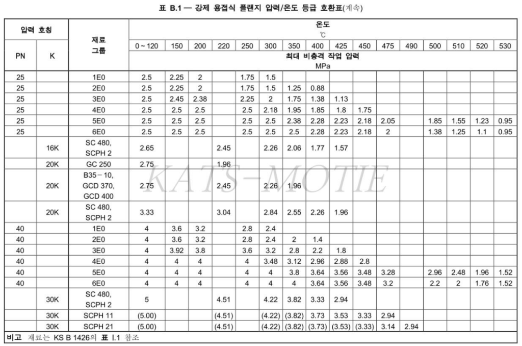 KS의 압력호칭 K 와 ISO의 PN호칭에 대한 압력/온도 등급표를 통합하였으며, 각 표준 간에 호환 가능한 표준과 치수의 확인을 위한 참고자료로 활용이 가능하다.