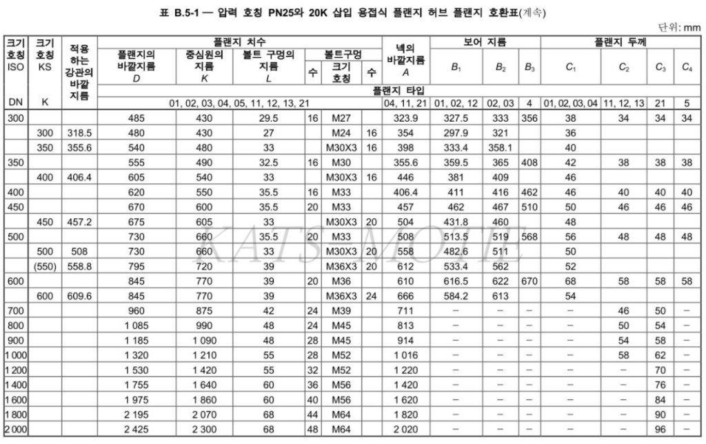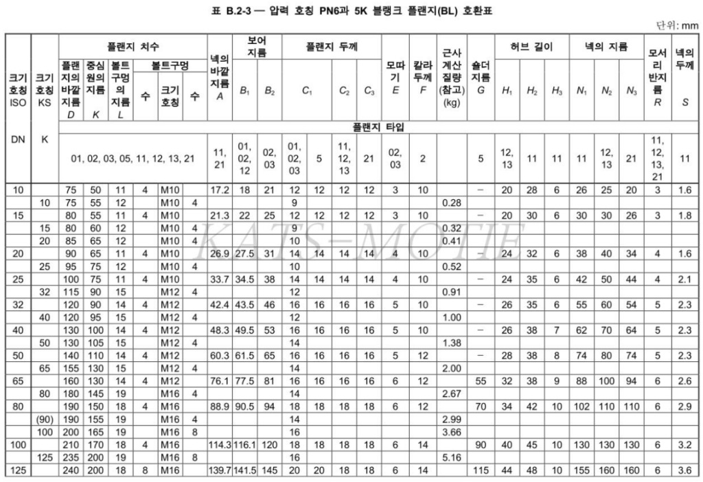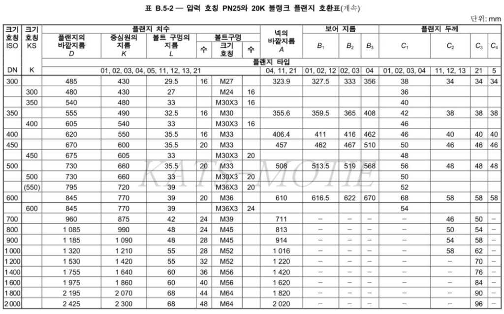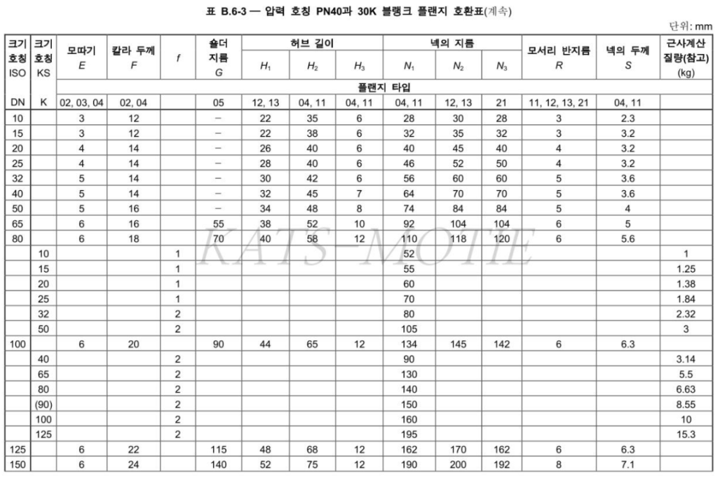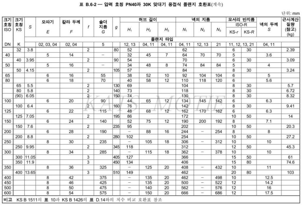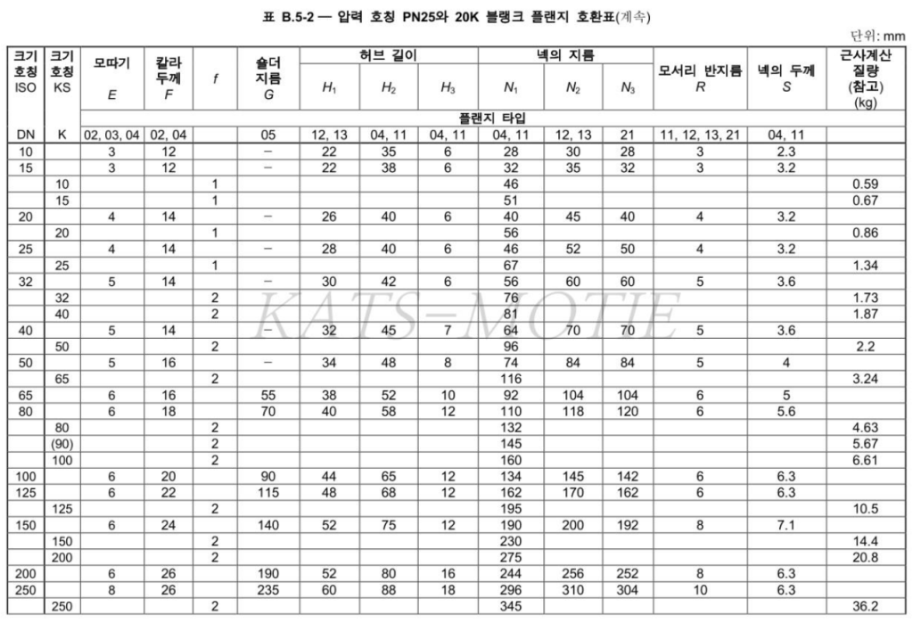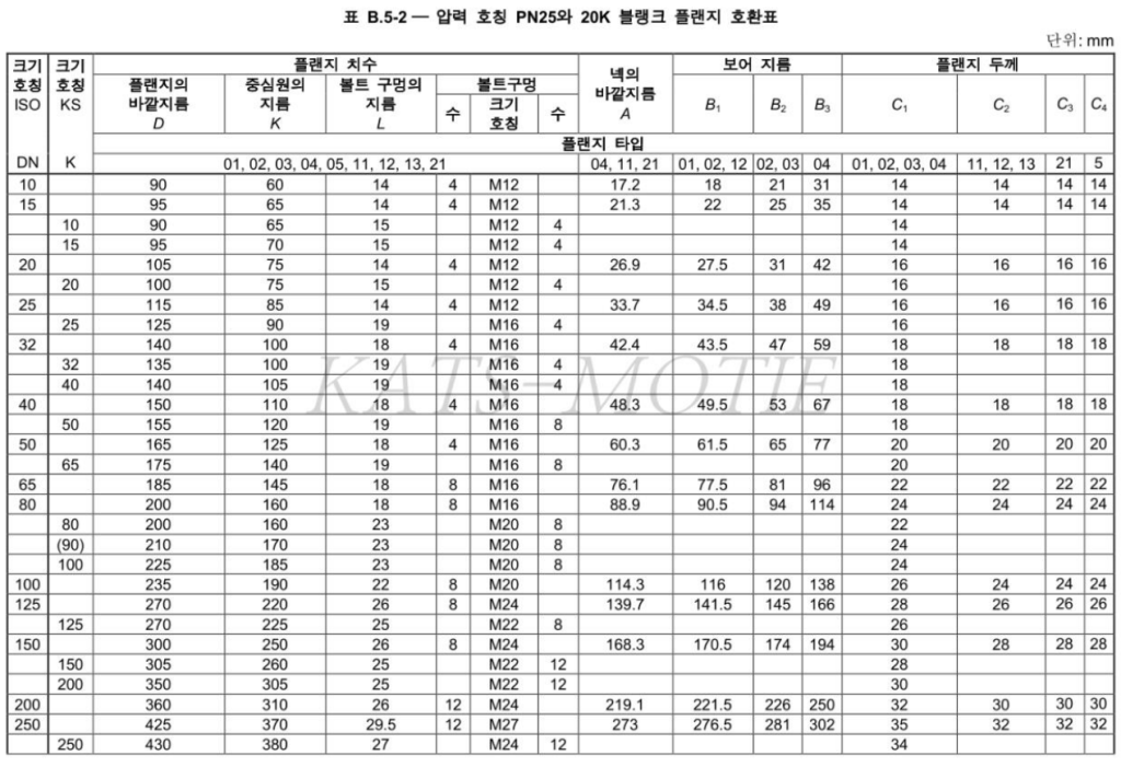 KS의 압력호칭 K 와 ISO의 PN호칭에 대한 압력/온도 등급표를 통합하였으며, 각 표준 간에 호환 가능한 표준과 치수의 확인을 위한 참고자료로 활용이 가능하다.