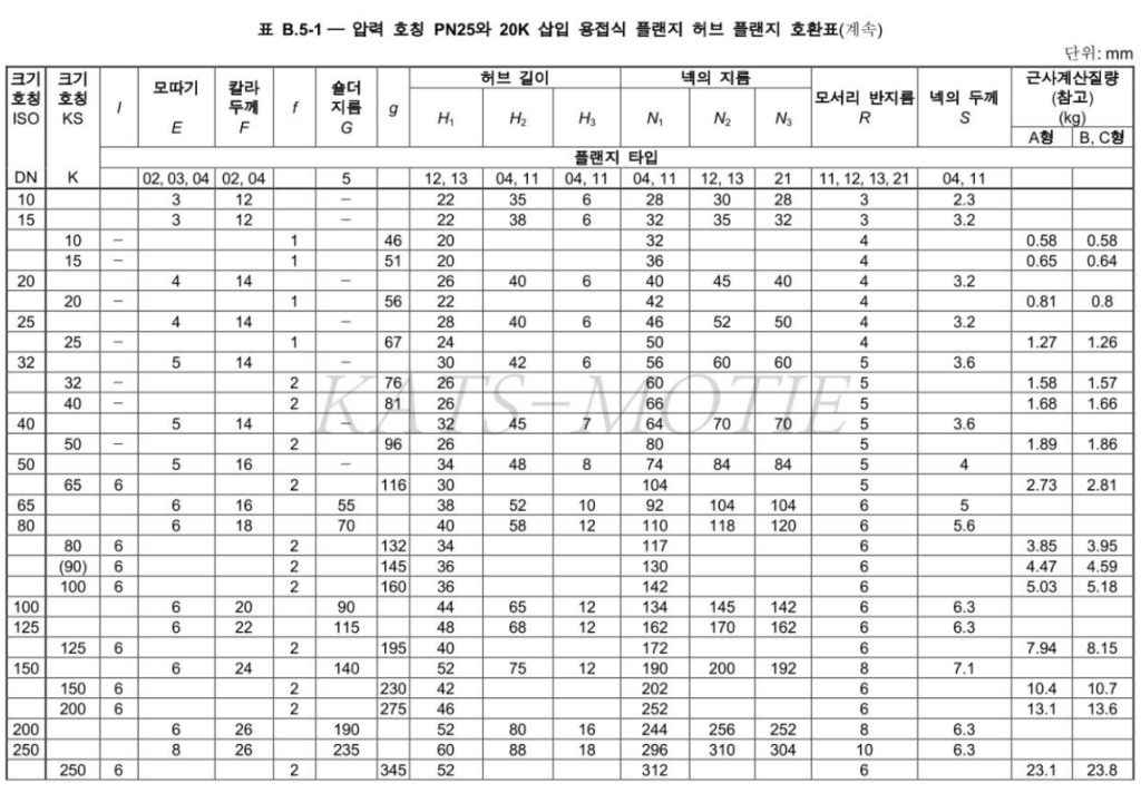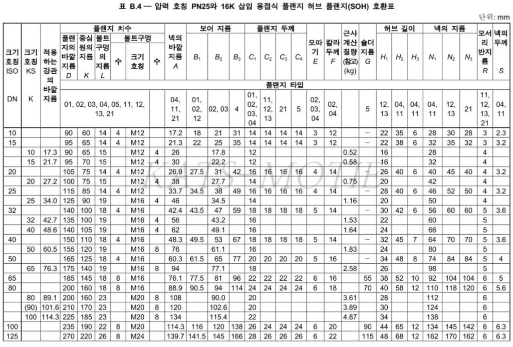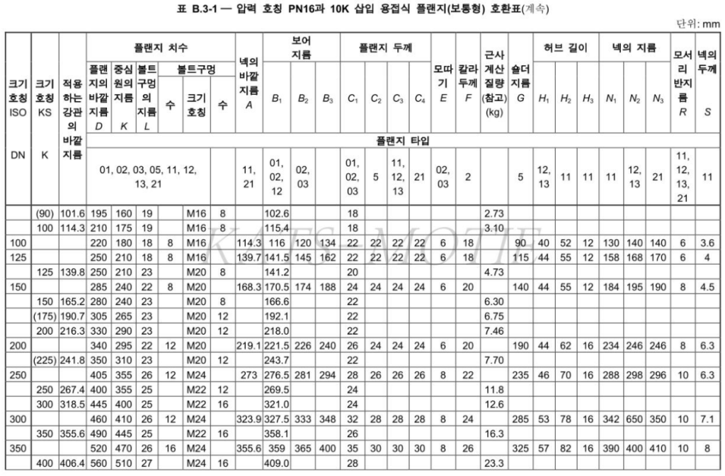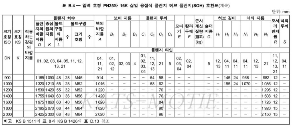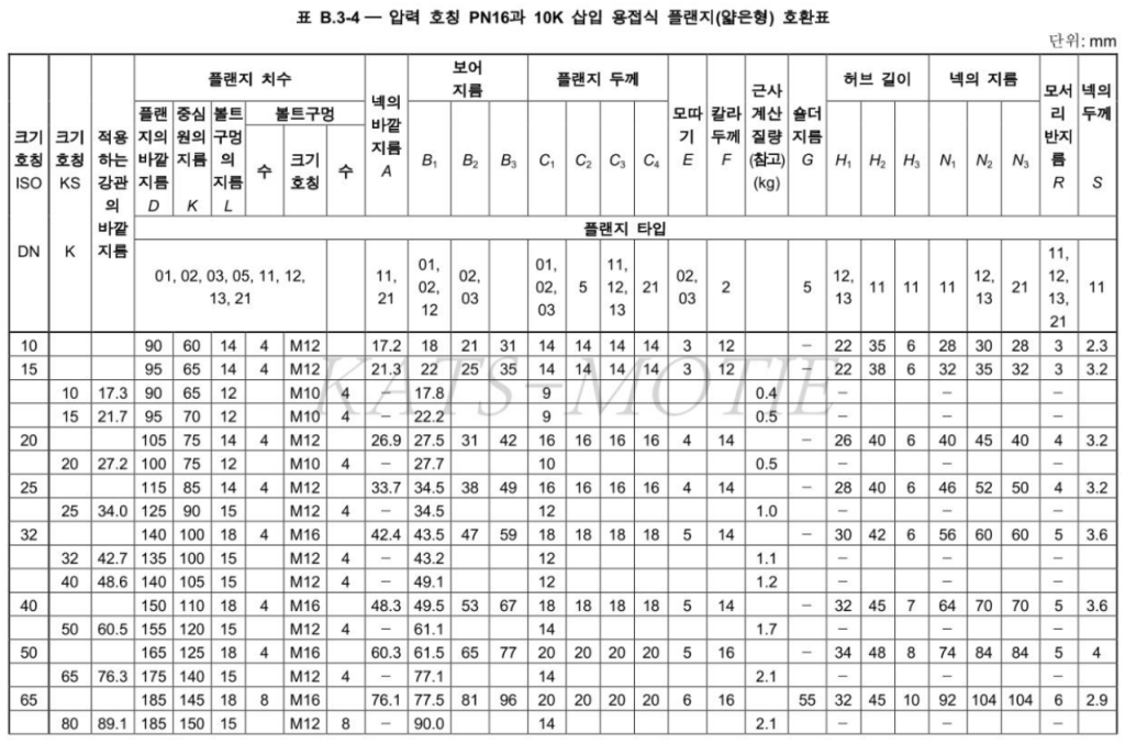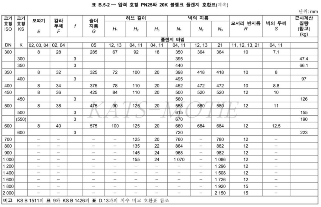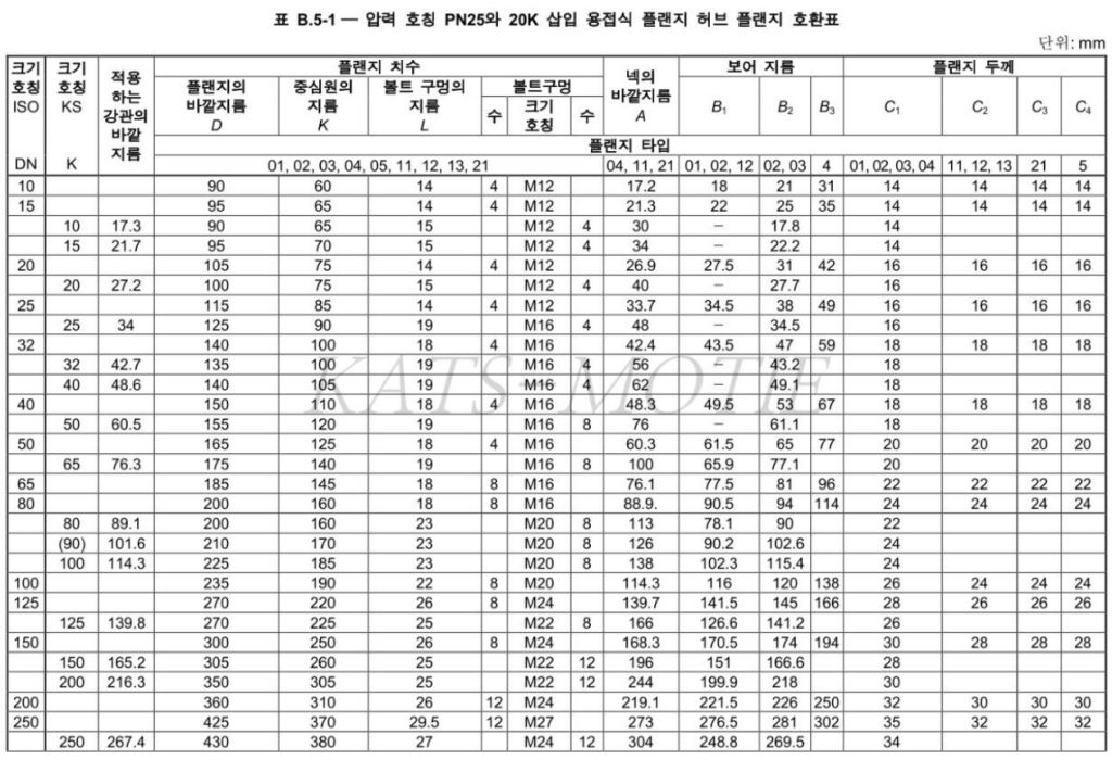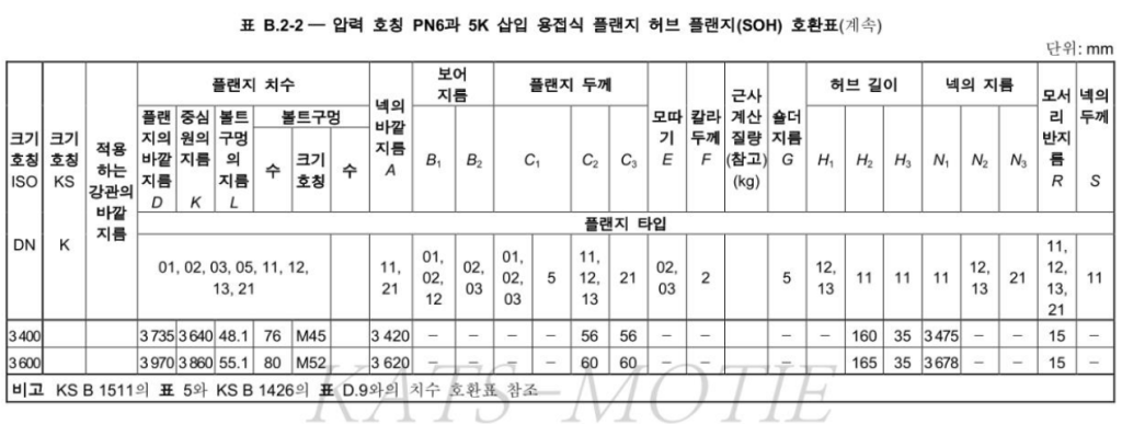 KS의 압력호칭 K 와 ISO의 PN호칭에 대한 압력/온도 등급표를 통합하였으며, 각 표준 간에 호환 가능한 표준과 치수의 확인을 위한 참고자료로 활용이 가능하다.