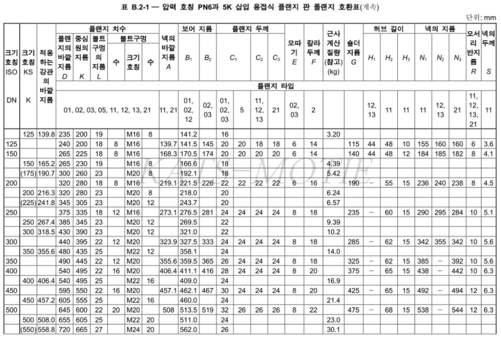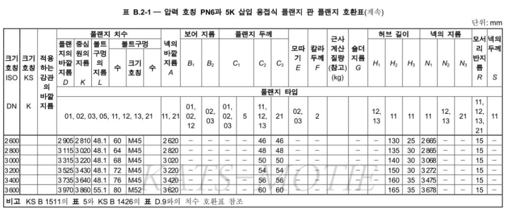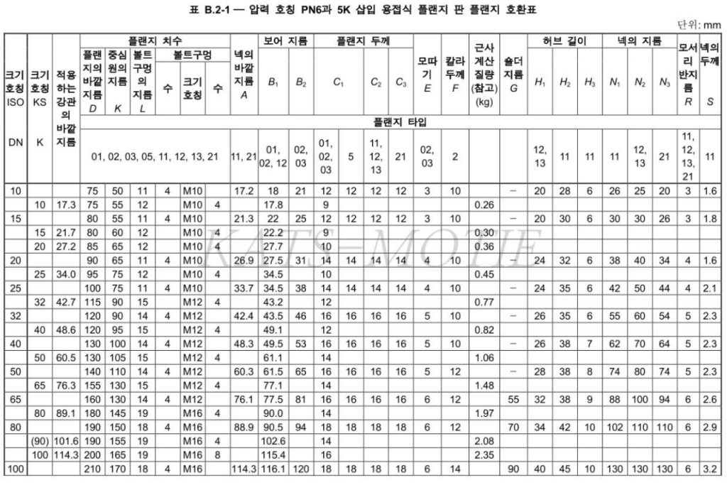 이 표준은 증기ㆍ공기ㆍ가스ㆍ물ㆍ기름 등의 일반용 배관에 사용하는 강관을 접속하는 강제 용접식 관플랜지 및 블랭크 플랜지에서, 기준 치수가 KS B 1511에 따른 압력 호칭 5K∼30K의 플랜지에 대하여 규정