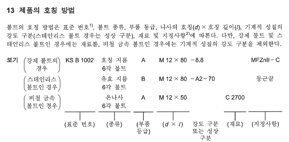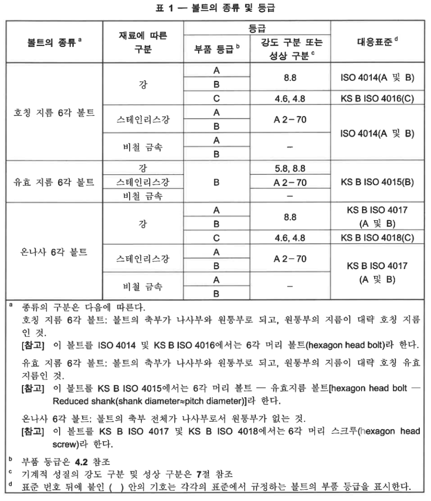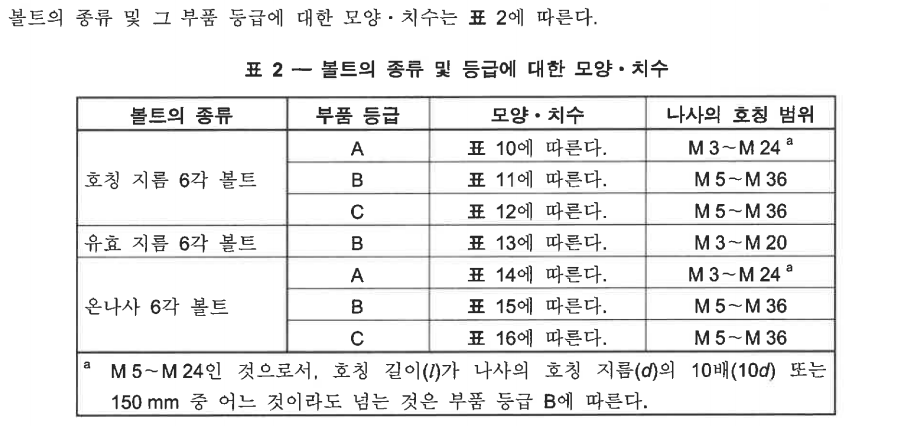 이 표준은 일반적으로 사용되는 강제, 스테인리스 강제 및 비철 금속제의 6각 볼트에 대하여 규정한다.