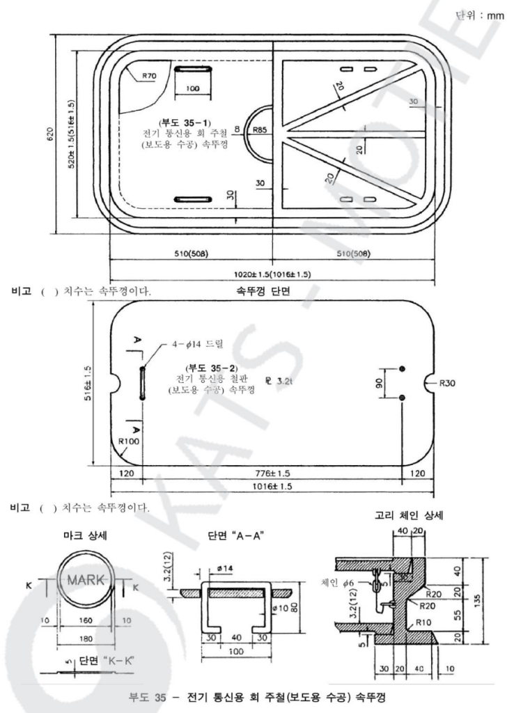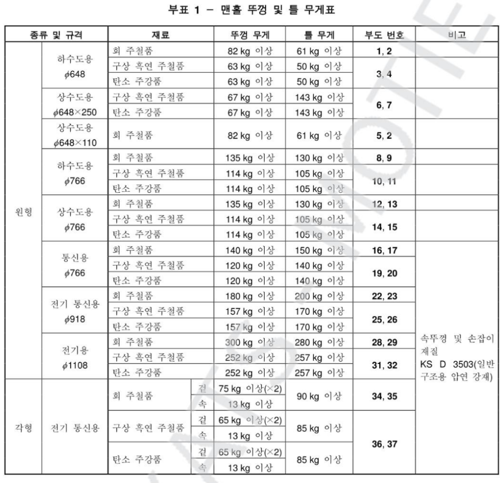 이 규격은 상하수도 전기 통신용 맨홀 뚜껑 및 틀에 대하여 규정한다.