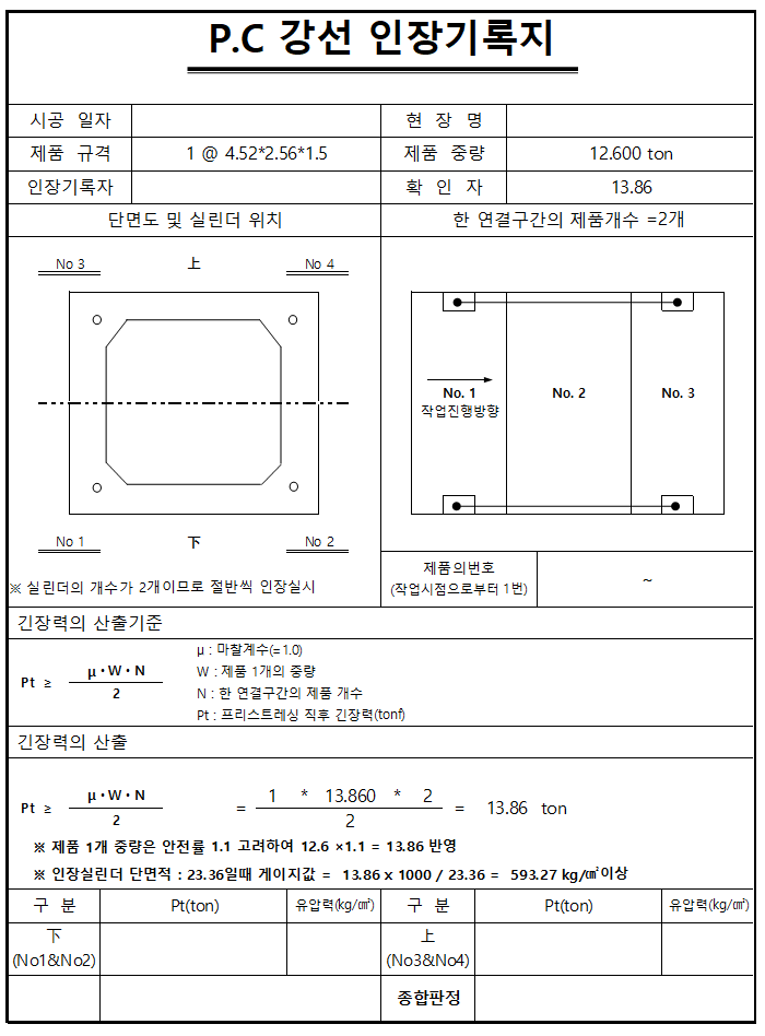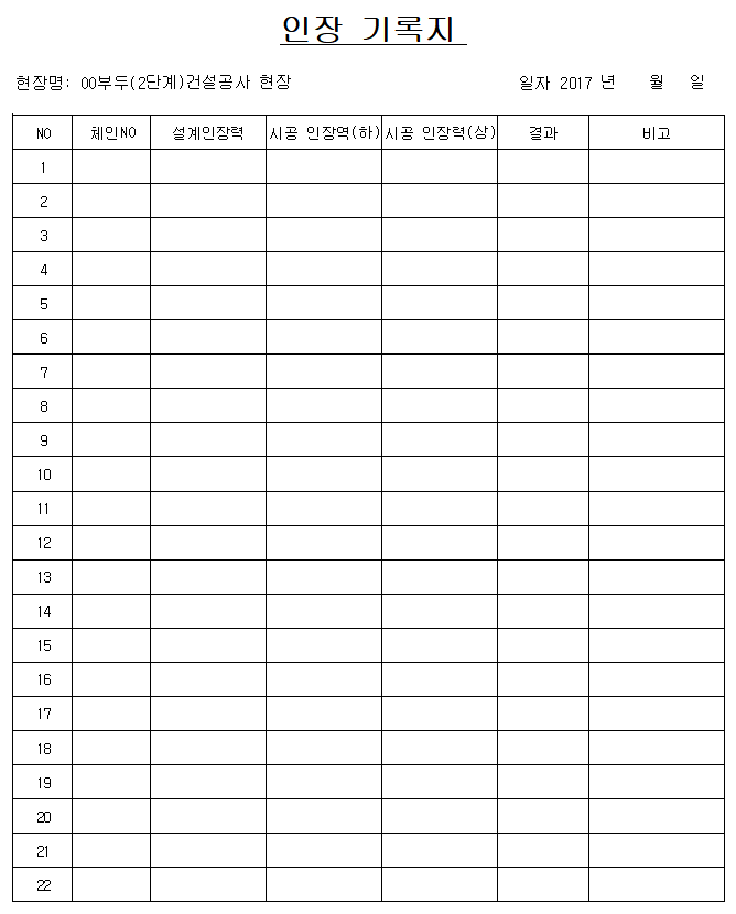 [양식] PC 강선 인장기록지 게시일: 2024년 09월 18일업데이트 날짜: 2024년 09월 28일게시자: HG카테고리:07.양식 양식 1 PC 암거 인장기록지.XLS HG heygaso.synology.me