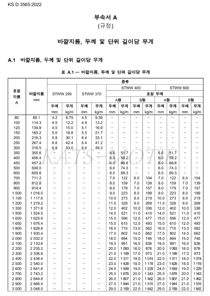 KS D 3565:2022 상수도용 도복장 강관(직관) 게시일: 2024년 07월 08일업데이트 날짜: 2024년 08월 29일게시자: HG카테고리:KS규격 KS 규격 : 상수도용 도복장 강관KS D 3565:20222022년 10월 12일 개정e나라표준인증 검색페이지 01. KS D 3565 (상수도용 도복장 강관,2022).pdf D80A 에서 D3000A 까지의 도복장 강관에 대한 규정 HG heygaso.synology.me