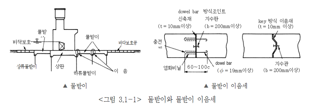 ⑹ 취수보의 세굴방지를 위해 다음사항을 고려한 물받이를 설치하여야 한다.