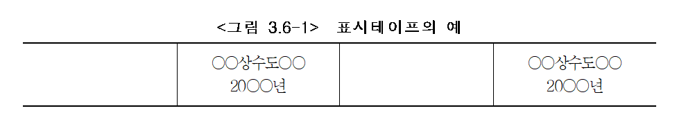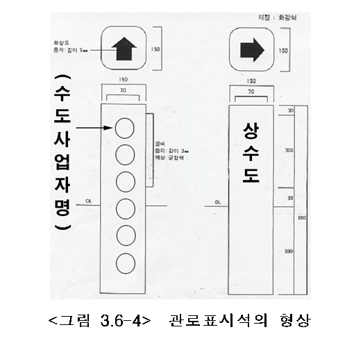 ⑺ 표지는 광역상수도는 “광수도”, 지방상수도와 공업용수도 및 그 이외의 상수도관은 “상수도”라고 표지하고, 관리기관은 6자 이내로 표지한다.