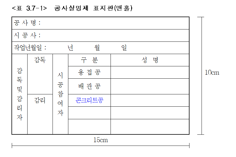 ⑵ 공사명의 색상은 청색으로 하고, 그 외에는 검정색으로 기재한다.